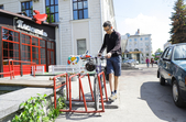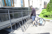«Класні парковки встановлює міськрада. Вона їх закупила, їх багато, але встановлюються вони тільки біля державних установ, шкіл, дитсадків і так далі. Вони мають найзручнішу та найбезпечнішу П-подібну форму. На мою думку, це найпростіша та найзручніша велопарковка. До того ж, її можна легко розширювати», - розповідає Тарас.
