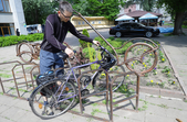 Незручні та небезпечні парковки - ті, на яких велосипеди закріплюються одним колесом, зазначає чоловік. До того ж, ними можна пошкодити двоколісник, особливо якщо в того дискові гальма. Також зловмисники можуть легко відстебнути переднє колесо і вкрасти велик без колеса.