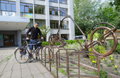 Іноді надійніше запаркувати велосипед біля стовпа, дерева чи високої огорожі, ніж на спеціальній велопарковці, - зауважує він і додає: велосипеди крадуть не лише в Житомирі та Україні, а в усьому світі. Щоби уникнути такої халепи в Житомирі, Тарас пересувається на найдешевшому велосипеді та рідко його миє, щоб він привертав менше уваги. А для дальних дистанцій в нього є інший, дорогий двоколісник.