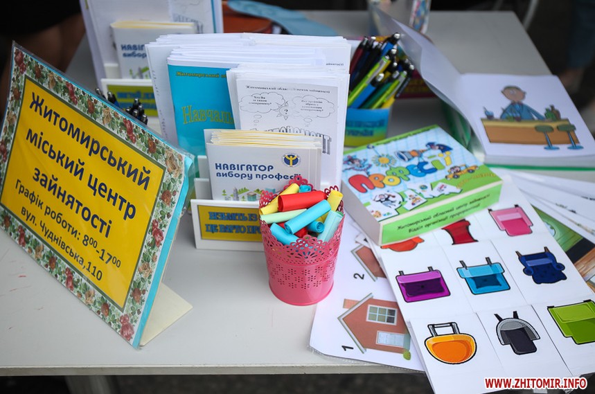 Відвідувачі Ярмарку можуть ознайомитися з наявними вакансіями на ринку праці Житомира, а абітурієнти – дізнатися про професії та спеціальності, які пропонують навчальні заклади.