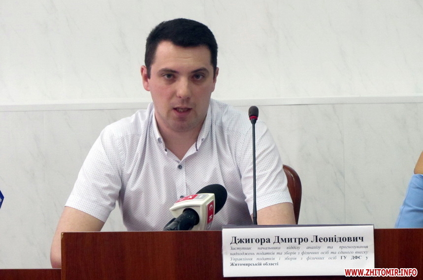 Про це на прес-конференції 30 травня повідомив заступник начальника відділу аналізу та прогнозування надходжень податків та зборів з фізичних осіб та єдиного внеску Управління податків і зборів з фізичних осіб ГУ ДФС у Житомирській області Дмитро Джигора.