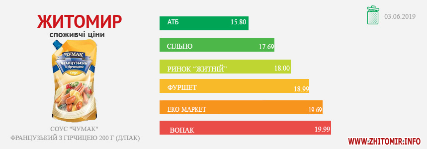 МОНІТОРИНГ ЗДІЙСНЕНО МЕТОДОМ КОНТРОЛЬНОЇ ЗАКУПІВЛІ, У МІСЦЯХ ПРОДАЖУ: AТБ, пр. Миру, 15 А, Ринок "Житній", майдан Житній ринок, Сільпо, майдан Житній ринок, 1,Фуршет, вул. Вітрука, 9 а, Вопак, вул. Київська, 87,ЕКО-маркет, вул. Мала Бердичівська, 2/7