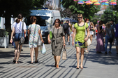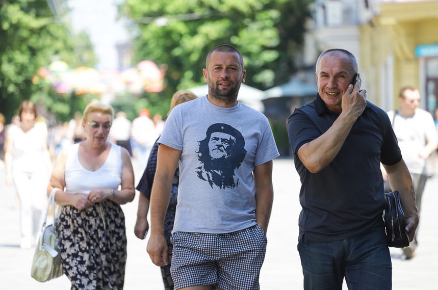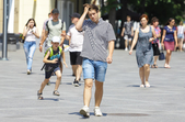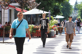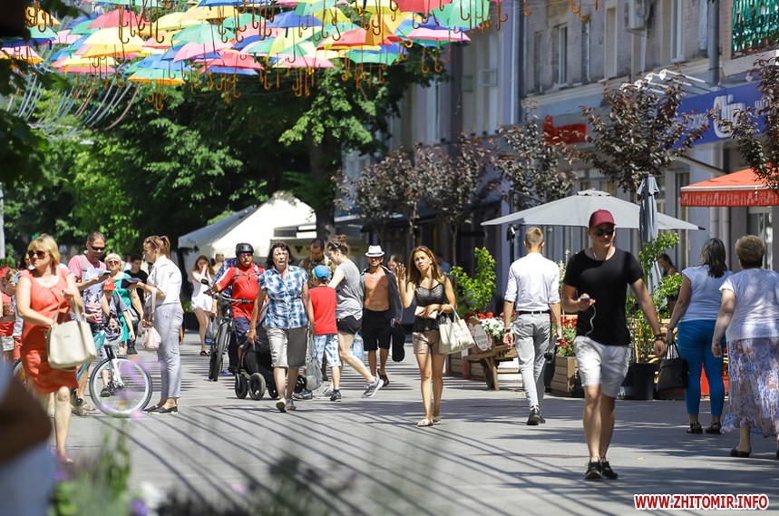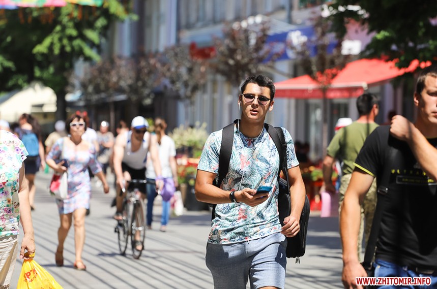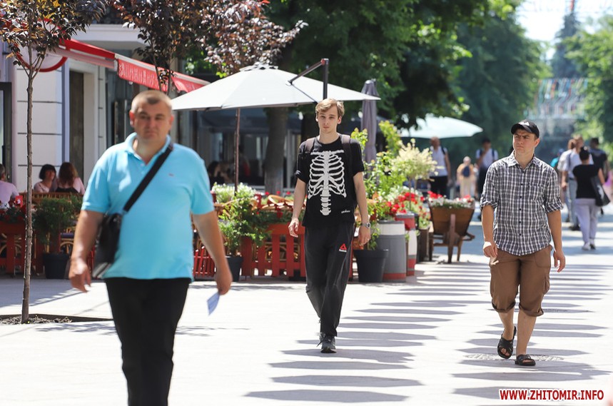 А от у виборі повсякденного одягу житомиряни не надто радикальні: багато хто не зраджує своєму стилю і не поспішає змінювати одяг з довгим рукавом на речі з коротким. Переважна більшість людей у закритому взутті – кедах чи кросівках. Популярні й футболки з різними принтами, жінки також обирають легкі сукні яскравих кольорів.