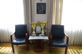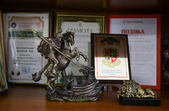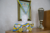 вишита бісером ікона, лялька-мотанка, численні кубки, нагороди, грамоти, пам’ятні