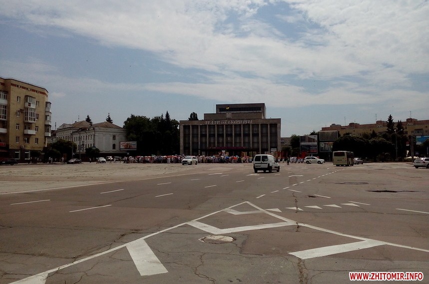 Близько 13 години 23 червня біля драмтеатру на Соборному майдані в Житомирі було зібрання людей, яке оточили патрульні автомобілі. З тролейбуса №5а, в якому їхала журналіст Житомир.info, людей висадили на майдані Перемоги і сказали робити пересадку з тими ж квитками, нічого не пояснивши.