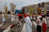 На майдані зібралися учасники римо-католицької ходи, - пояснили сайту в патрульній поліції. Задля її проходження з 11.15 до 13.00 в центрі частково обмежили рух транспорту. Рух регулювали 4 екіпажі патрульних.