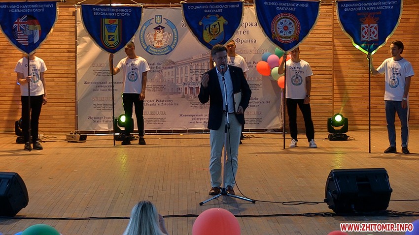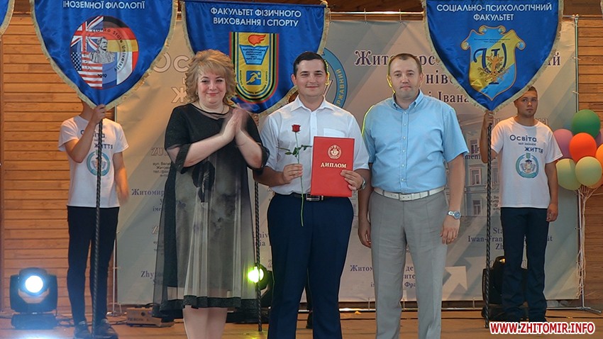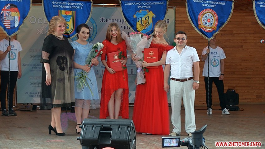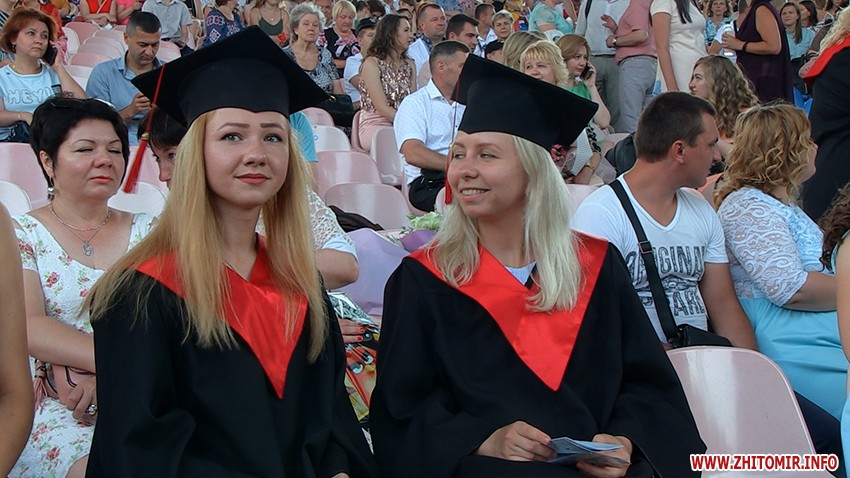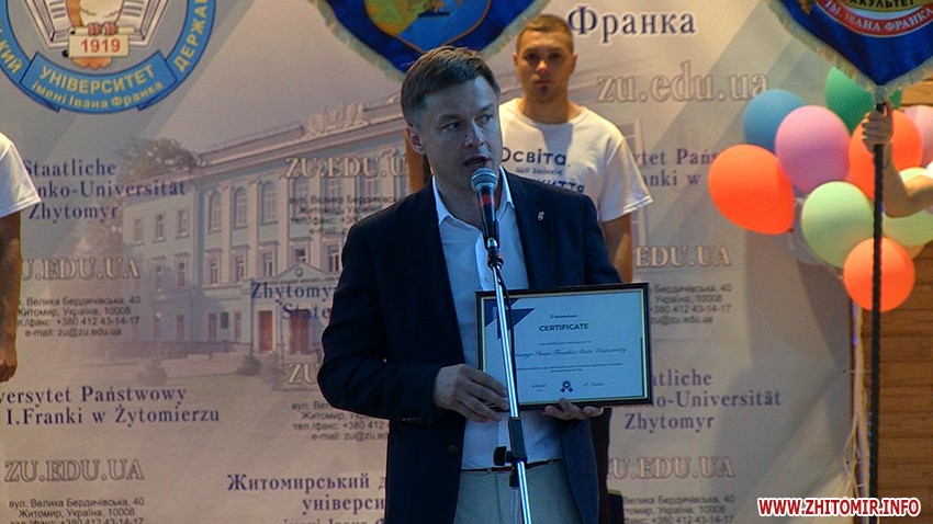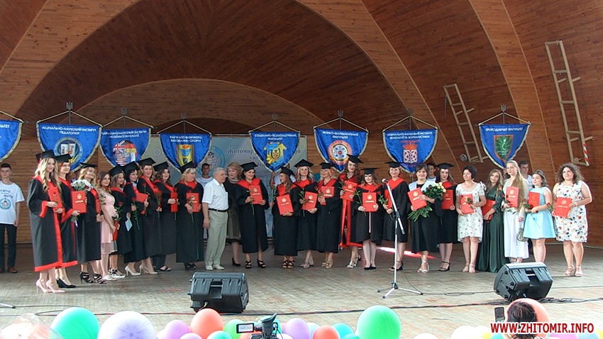 Більше однієї тисячі студентів Житомирського державного університету 27 червня отримати заповітні дипломи. Найуспішніших бакалаврів та магістрів навчального закладу відзначили у літньому театрі «Ракушка». Із завершенням навчання в університеті молодь привітав Сидір Кізін. Звернувся до випускників англійською мовою та побажав прямувати за своїми мріями і не боятися змінювати нашу країну, а керівництву вузу вручив сертифікат на безкоштовне використання унікальної навчальної платформи IDecisionGames.
