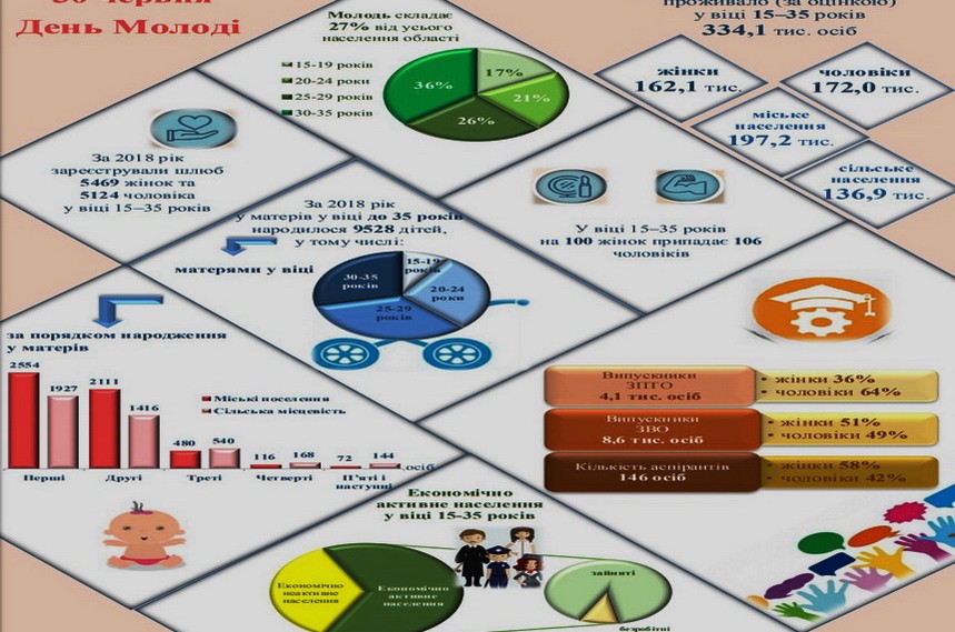 Про це йдеться в інфографіці, підготовленій Головним управлінням статистики до Дня молоді, який цьгоріч припав на 30 червня.