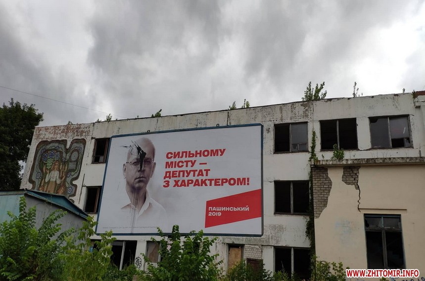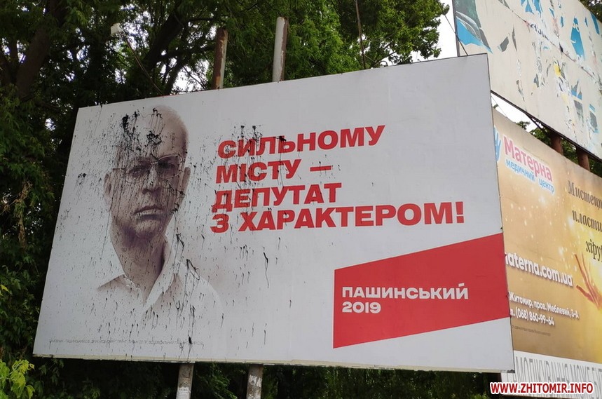 Як стало відомо, мова йде про кілька агітаційних білбордів кандидата у депутати Верховної ради по мажоритарному округу №64 Сергія Пашинського. Так, 28 червня на сторінці кандидата в депутати у соцмережі з’явилися фото білбордів, облитих чорною фарбою.