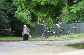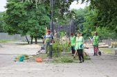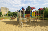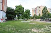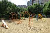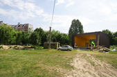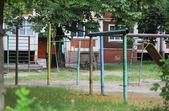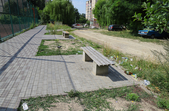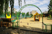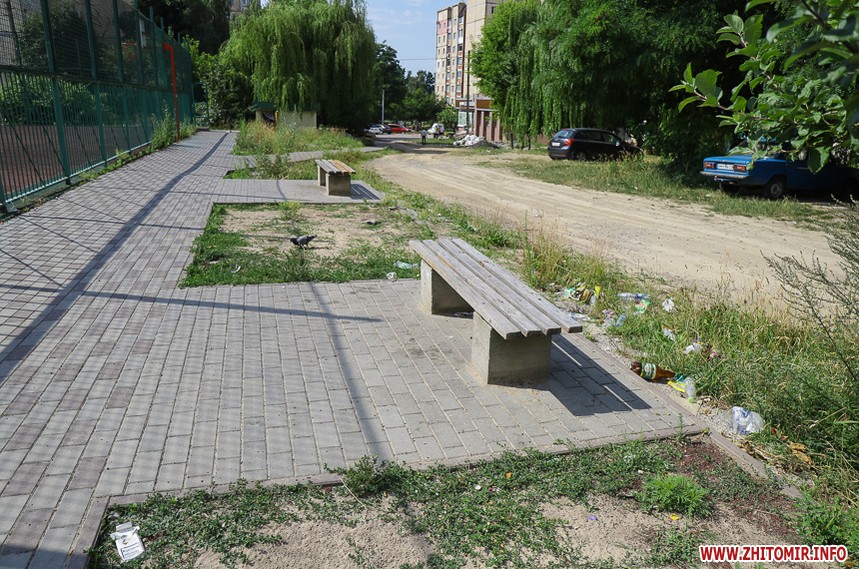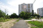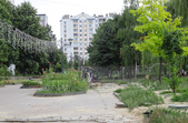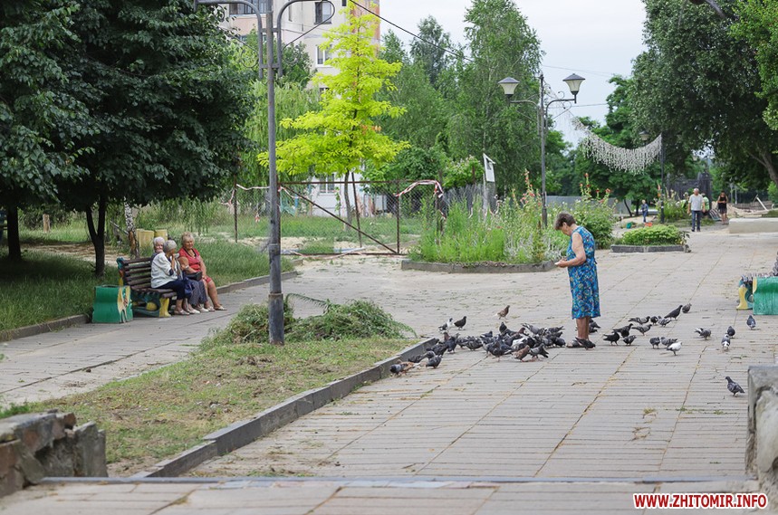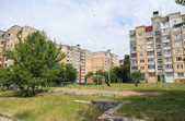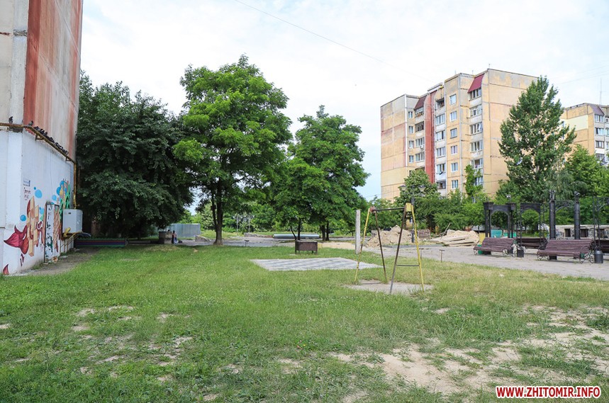 Біля панельних багатоповерхівок дитячі майданчики – як зовсім нові, так і старенькі, з облущеною фарбою. Тут багато голубів, які летять до рук попоїсти, є й майданчик для вигулу собак – кілька років тому він був єдиним офіційним майданчиком для чотирилапих. Кілька місцевих забігайлівок і вагончиків з фаст-фудом фотокор застала зачиненими.