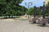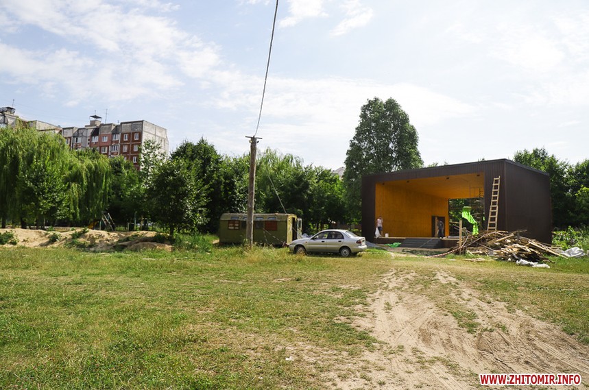 Оновлюється бульвар Польський, проект реконструкції якого у квітні 2019 показував тодішній головний архітектор Житомира Юрій Безбородов: будують сцену.