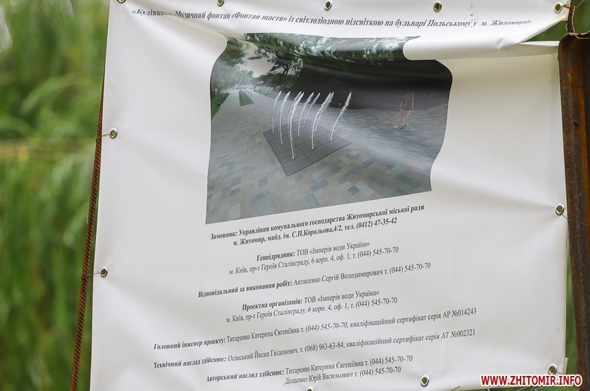 У квітні 2019 Житомир.info з’ясував, що фонтан за 1,2 млн грн будує київська фірма, яка фігурує у справі про розтрату півтора мільйона гривень. Станом на 2 липня до місця майбутнього дива підвели воду та вкопали металевий басейн, який огородили металевою сіткою.
