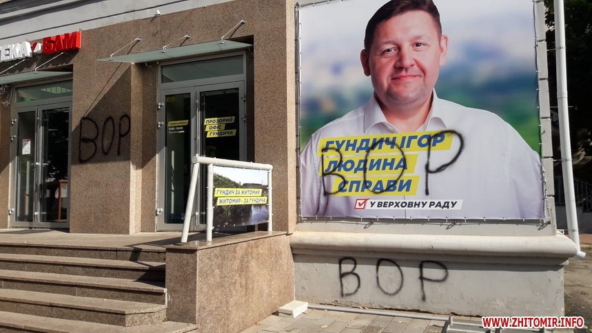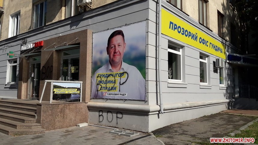 У Житомирі розмалювали офіс кандидата в народні депутати по округу №62 Ігоря Гундича.