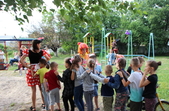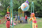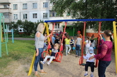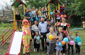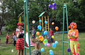 З нагоди відкриття майданчика у дворі влаштували справжнє свято. Найбажаніші гості на ньому – діти. Для них лунає музика, аніматори проводять конкурси та ігри. І поки батьки тішаться подарунком і діляться враженнями, діти вже випробовують майданчик разом з друзями.