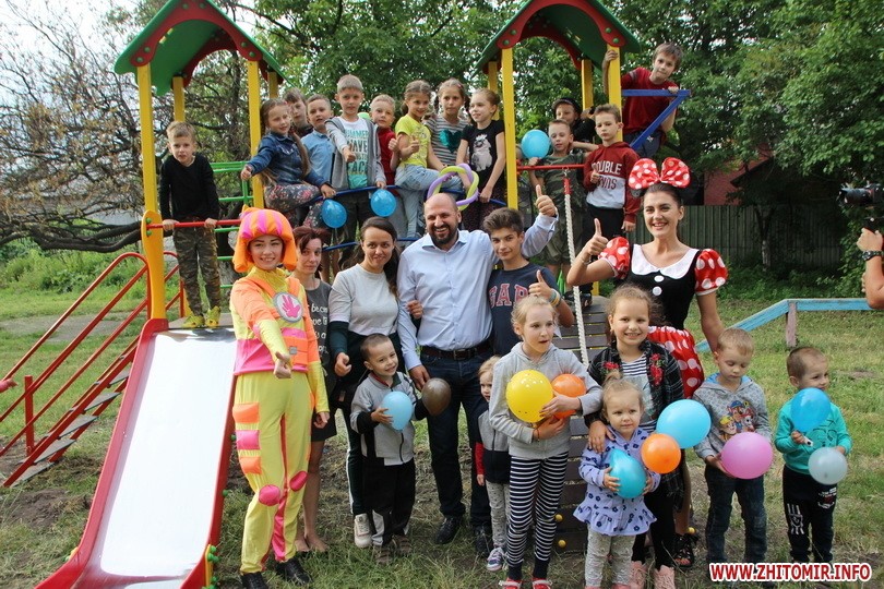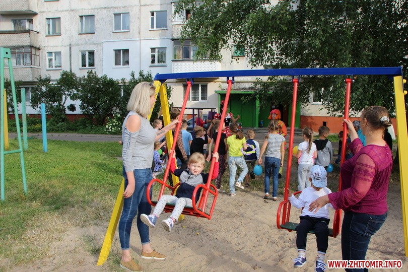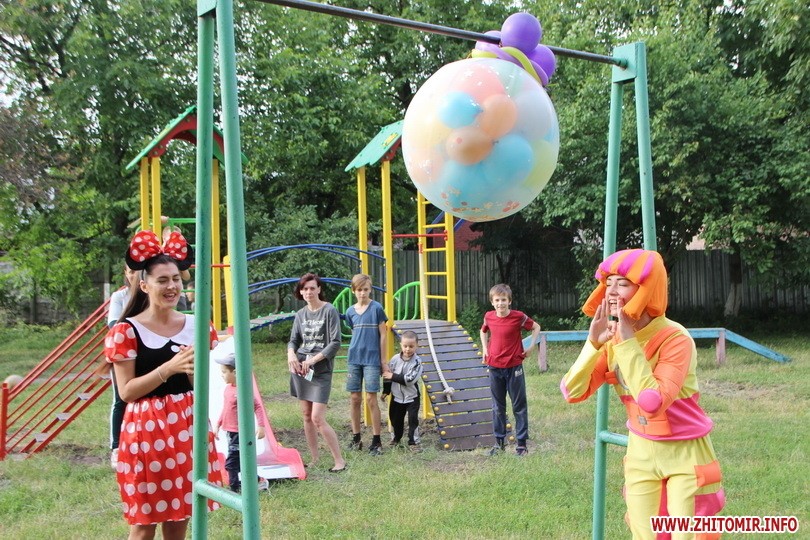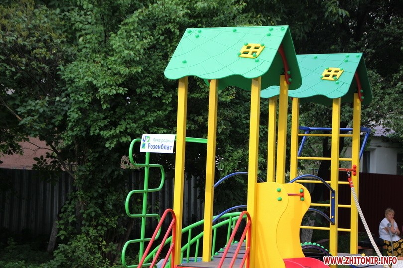 У багатоповерхівці за адресою вул. Лесі Українки, 47 у Житомирі мешкає близько сотні дітей різного віку. Віднедавна у них з’явилася нова ігрова зона, облаштована сучасним дитячим майданчиком, який подарував Фонд Родини Розенблат у рамках програми «Щасливе дитинство».