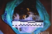 Під час огляду транспортного засобу, зокрема й багажного відділення, у рюкзаку поліцейські виявили каміння, схоже на бурштин-сирець. Слідчо-оперативна група на місці зафіксувала, що у наплічнику знаходилось близько двох кілограмів каменів.