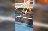 На відео видно, що вода б’є з-під землі, місце пориву огороджено стрічкою, проте ремонтні роботи не ведуться.