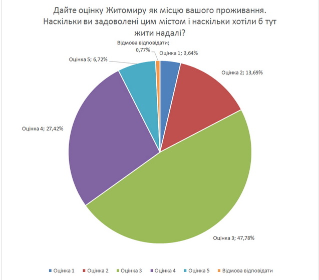 Показово, що 50% житомирян оцінюють своє життя в місті на трієчку.