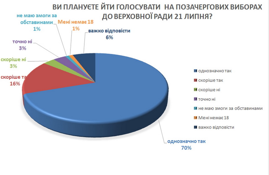 Явка на парламентських виборах має бути високою. Зіткнувшись з перевиборчою ситуацією, люди проявляють активність (тут маємо на увазі, що люди мало знають про майбутні вибори, але зіткнувшись з цією інформацією проявляють себе позитивно).Немає розгубленості, занепадницьких настроїв.