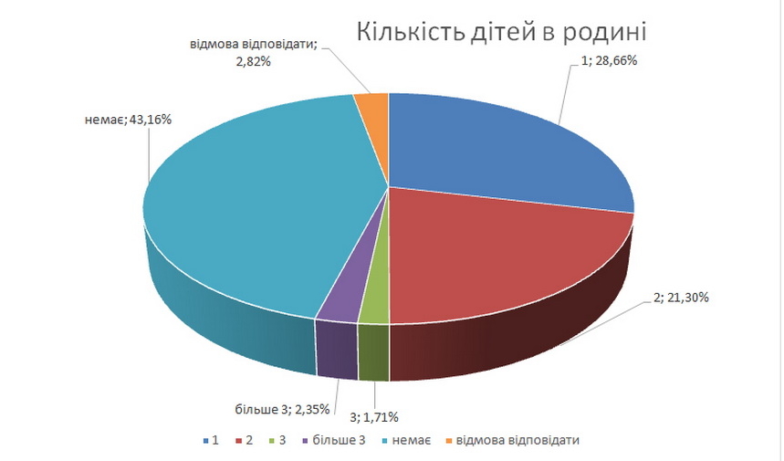 Відповідь щодо малої кількості дітей в родинах зумовлена специфікою аудиторії інтернету і Facebook – тут менше людей старшого віку.