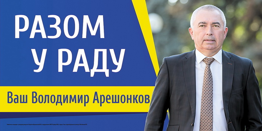 Я, Володимир Арешонков, іду в Раду з твердим переконанням, що жоден з 32 805 людей, які повірили мені, за 5 років жодного разу не пошкодували про це. Я чесно відпрацював і в парламенті, і в окрузі: не крав, не займався рейдерством, не прогулював засідань парламенту, не проголосував за жоден законопроект, який би шкодив чи звичайній людині, чи державі в цілому.
