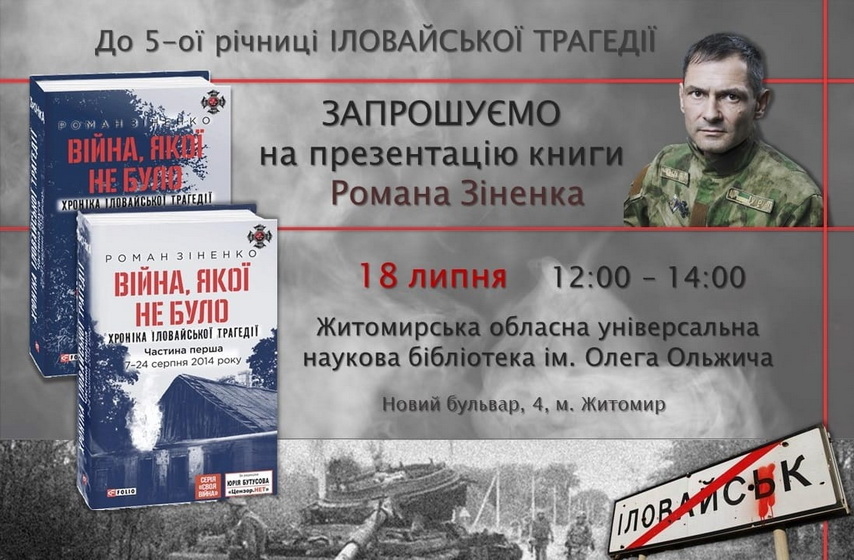 18 липня в Житомирській обласній універсальній науковій бібліотеці ім. Олега Ольжича відбудеться презентація книги Романа Зіненка про Іловайську трагедію «Війна, якої не було».