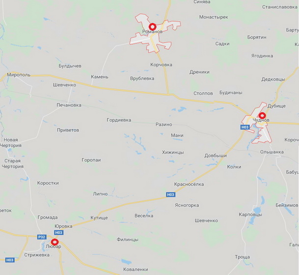 КАРТА ВІДБОРУ ПРОБ ВОДИ НА ТЕРИТОРІЇ РОМАНІВСЬКОГО, ЛЮБАРСЬКОГО ТА ЧУДНІВСЬКОГО РАЙОНІВ ДЛЯ ПРОВЕДЕННЯ ДОСЛІДЖЕНЬ