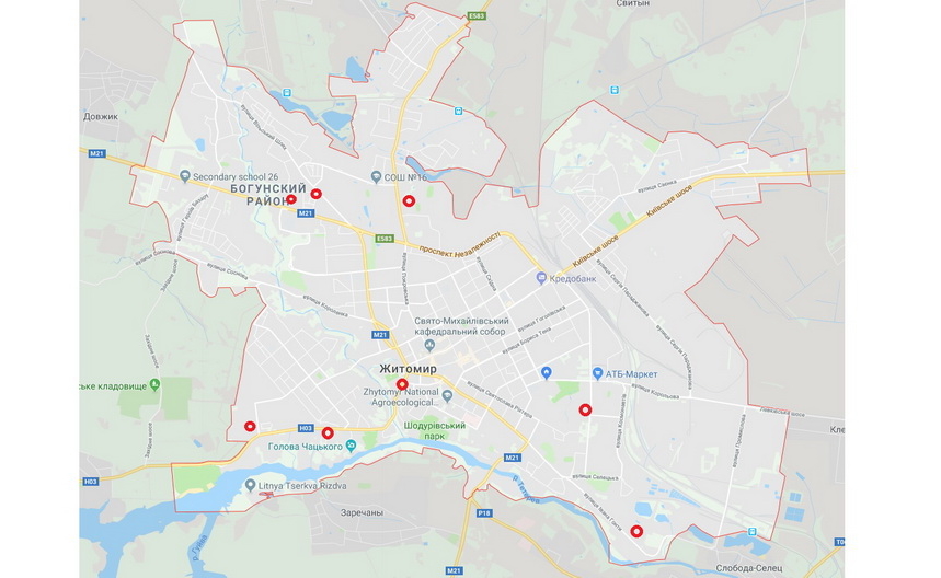 КАРТА ВІДБОРУ ПРОБ ВОДИ ДЛЯ ПРОВЕДЕННЯ ДОСЛІДЖЕНЬ НА ТЕРИТОРІЇ ЖИТОМИРСЬКОГО РАЙОНУ