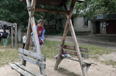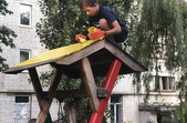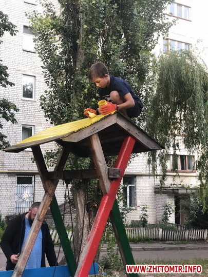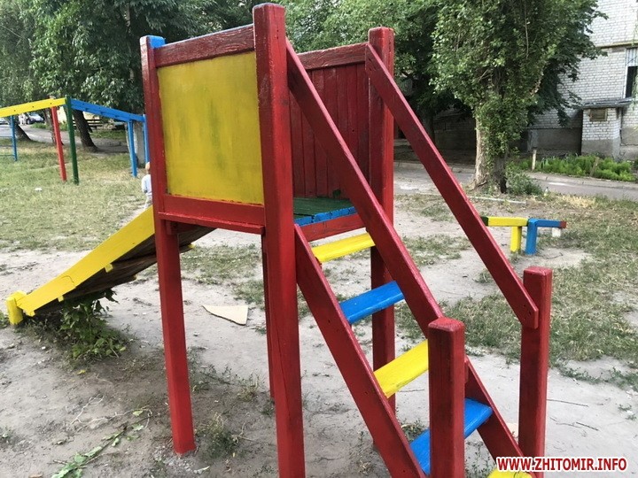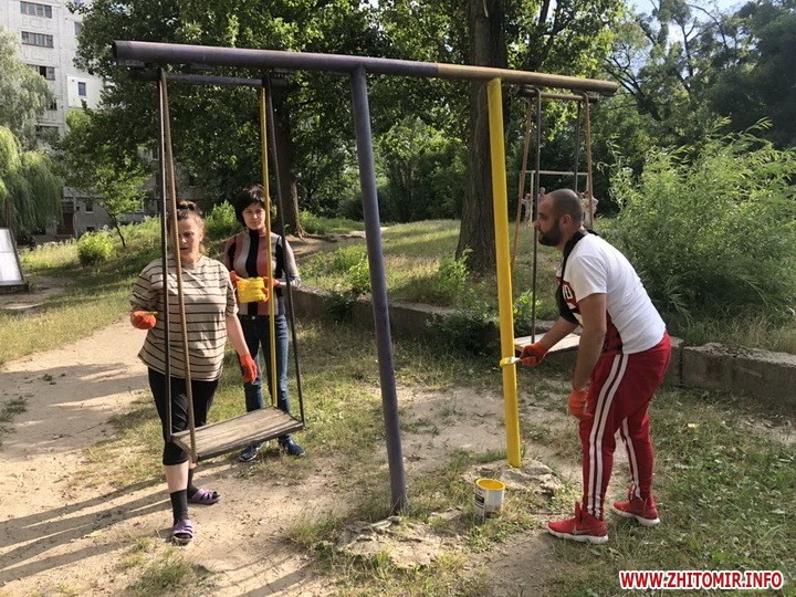 У наших дворах вже давно стояли дитячі майданчики. Виникла ідея привести їх до ладу. Ми просто зібралися з сусідами та за два дні пофарбували і підремонтували їх.