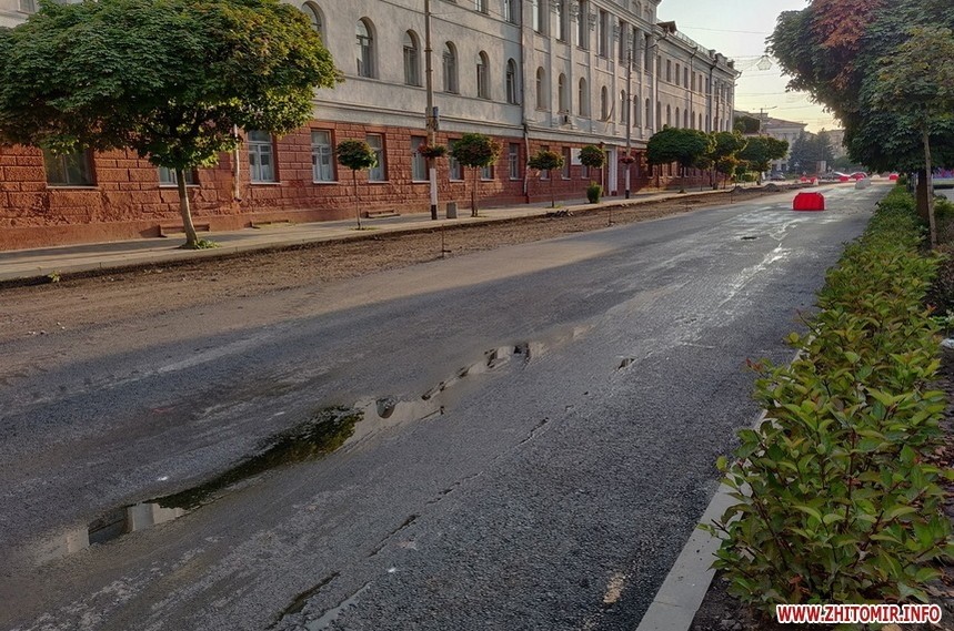 Увечері 17 липня в рамках капітального ремонту вулиці Великої Бердичівської в Житомирі дорожники постелили нижній шар асфальту.