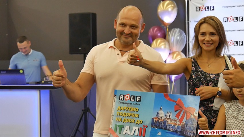 Але заохочувальними цінними подарунками організатори свята не обмежились. Найбільш бажаними призами у розіграші стали три путівки на двох за кордон до Франції, Італії та Іспанії. Житомиряни, котрі отримали такий подарунок від гіпермаркету Rolf спочатку і самі не повірили в свою удачу.