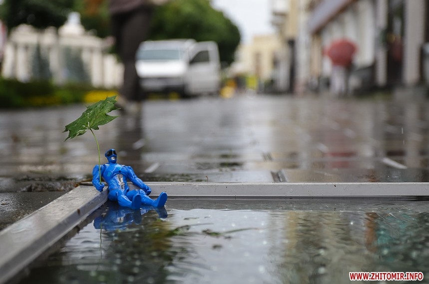 30 липня іграшковий супергерой «поміряв» калюжі після тривалого дощу в Житомирі. Фоторепортаж.