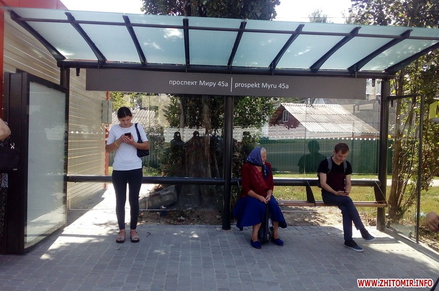 На зупинці обласного перинатального центру в Житомирі, де у липні 2019 МАФ «Z-точка» переробили на магазин, звели нову «європейську» зупинку.