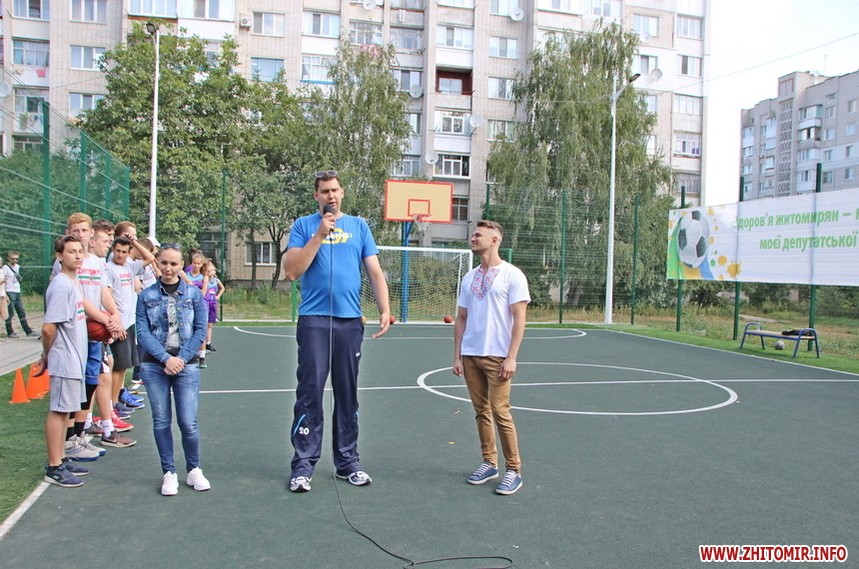 Цей спортивний майданчик складається із двох зон – футбольно-баскетбольного поля та території, де є спортивні тренажери, які тренують усі групи м’язів. Вартість спортивного поля склала близько 1 млн 600 тис. грн, з них 1,58% – це кошти міського бюджету, решта – держсубвенція, яку вдалось направити у Житомир за ініціативи Борислава Розенблата.
