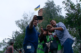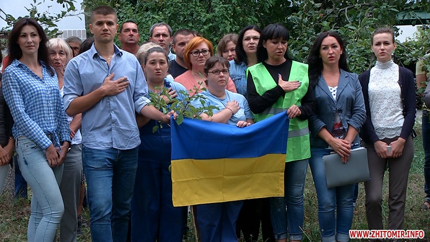 Також у церемонії підняття прапору взяли участь представники волонтерського та ветеранського руху та школярі школи №33. Волонтери зазначили: те, що найбільший прапор міста висить саме тут, є доречним, адже підприємство постійно допомагає воїнам на Сході країни. Житомирська волонтерка Юлія Толмачова розповіла, що такий захід виховує патріотизм у дітях.