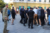 Згодом кілька чоловіків спробували кидати в учасників акції помідорами та курячими яйцями, втім, їм завадили це зробити.