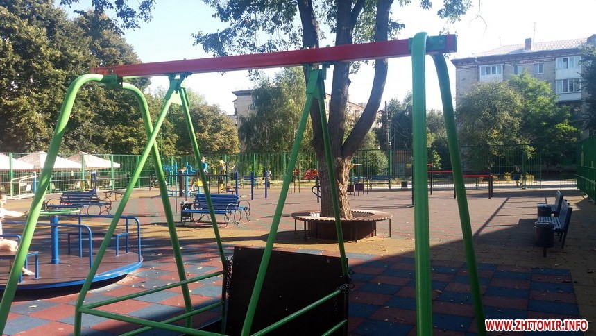 З «інклюзивної» гойдалки на майданчику за кінотеатром «Україна» в Житомирі зникли гвинти на опорі.
