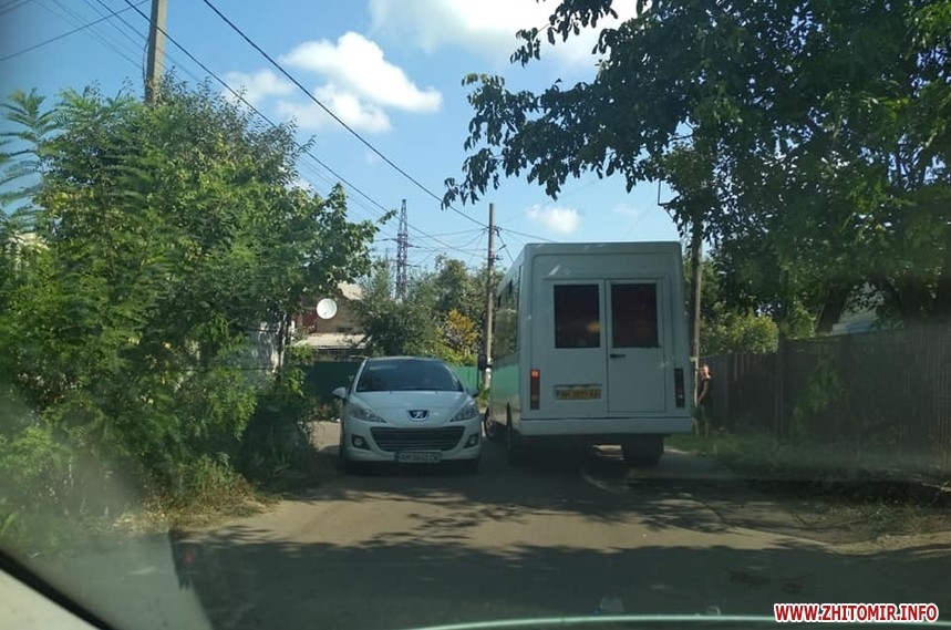 Фото вузьких переповнених вуличок, якими водіям доводилося минати перекрите перехрестя, близько 21.00 год. 31 серпня у соцмережі оприлюднила житомирська волонтерка Марія Уланова.