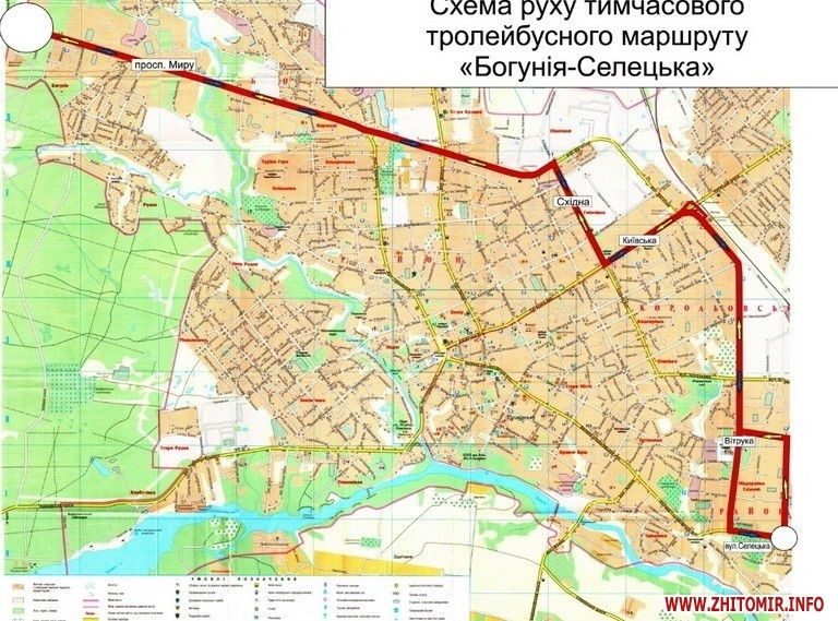 «У зв’язку з проведенням капітального ремонту дороги по вул. Перемоги, 03-04.09.2019 року з 10.00 години тролейбусні маршрути №2,3,5-а буде скасовано, на період проведення ремонтних робіт організовано роботу тролейбусного маршруту «Богунія - проспект Незалежності - вул.Східна - вул.Київська - вул. Вітрука-вул.Селецька» та в зворотному напрямку», - йдеться у повідомленні.
