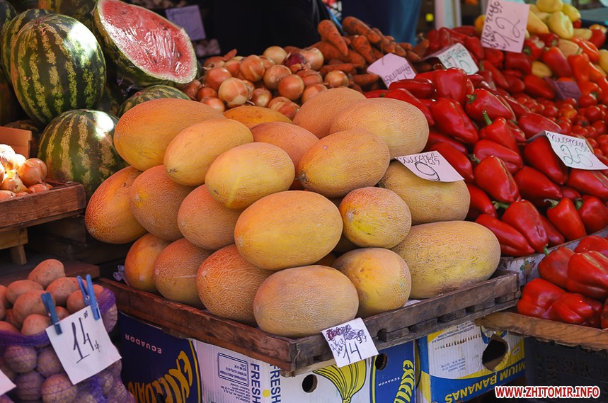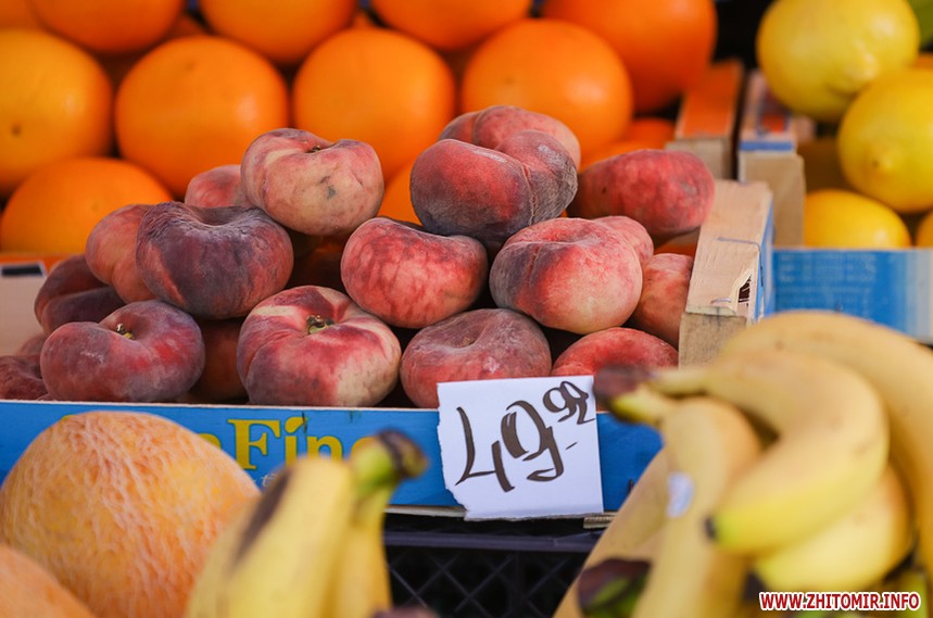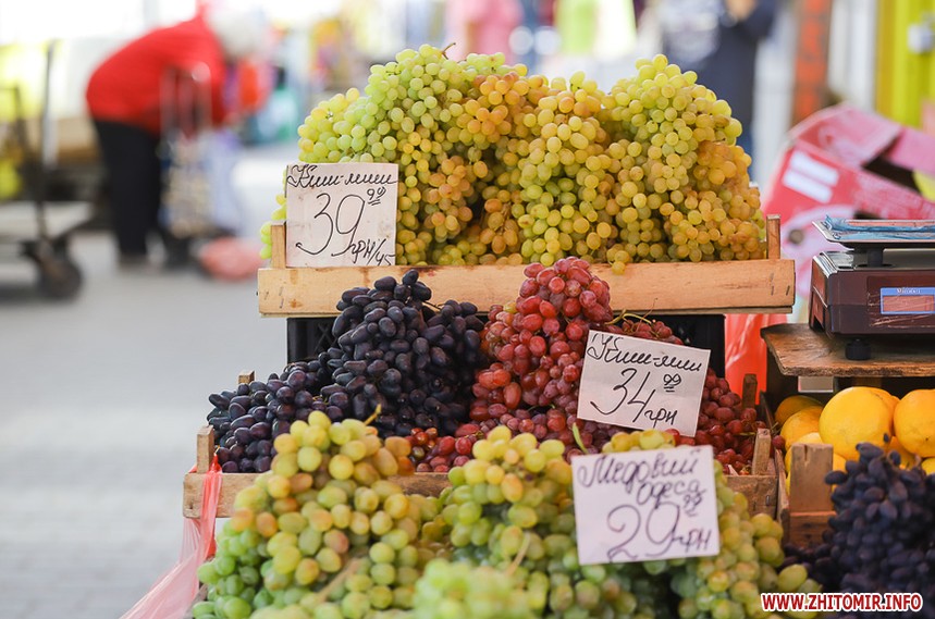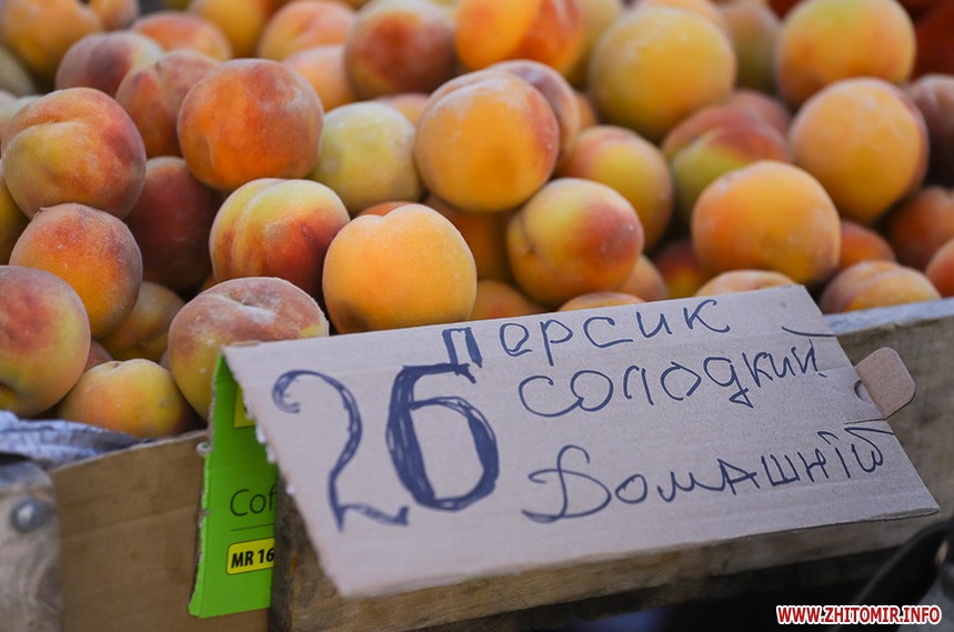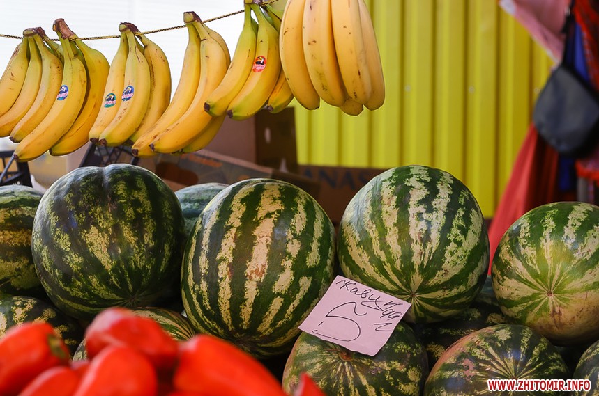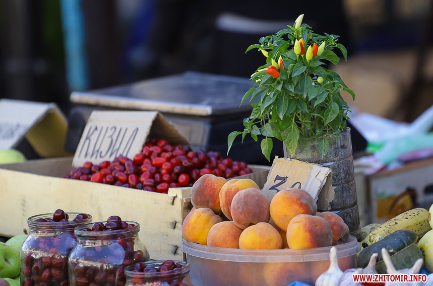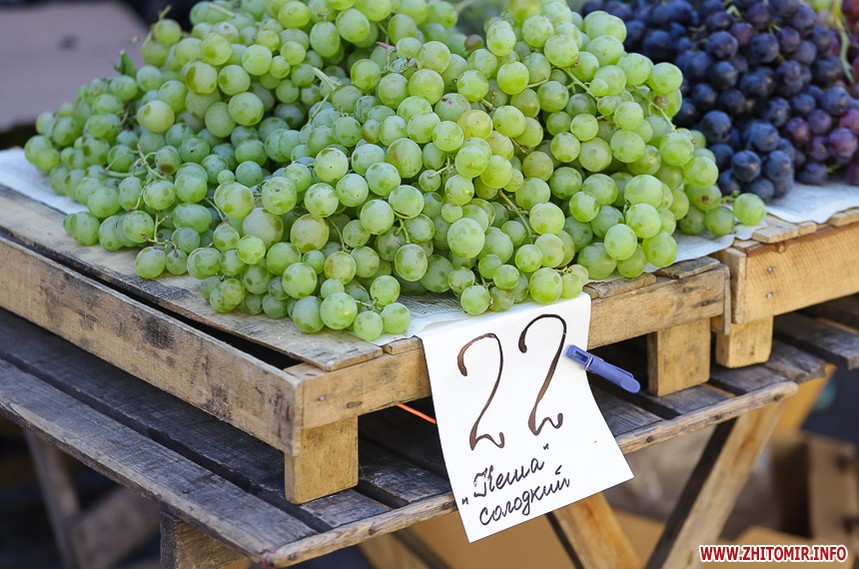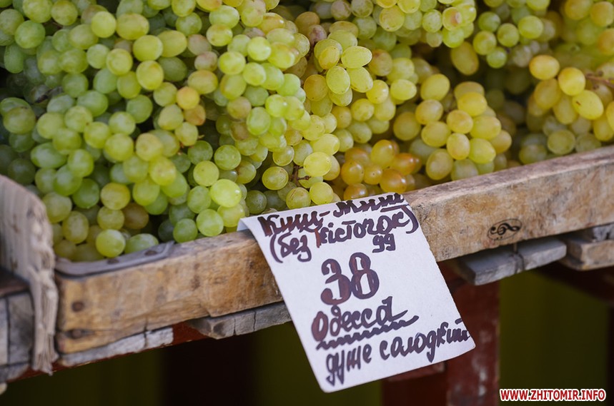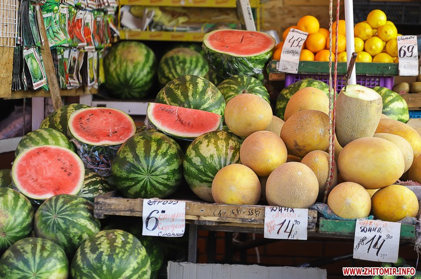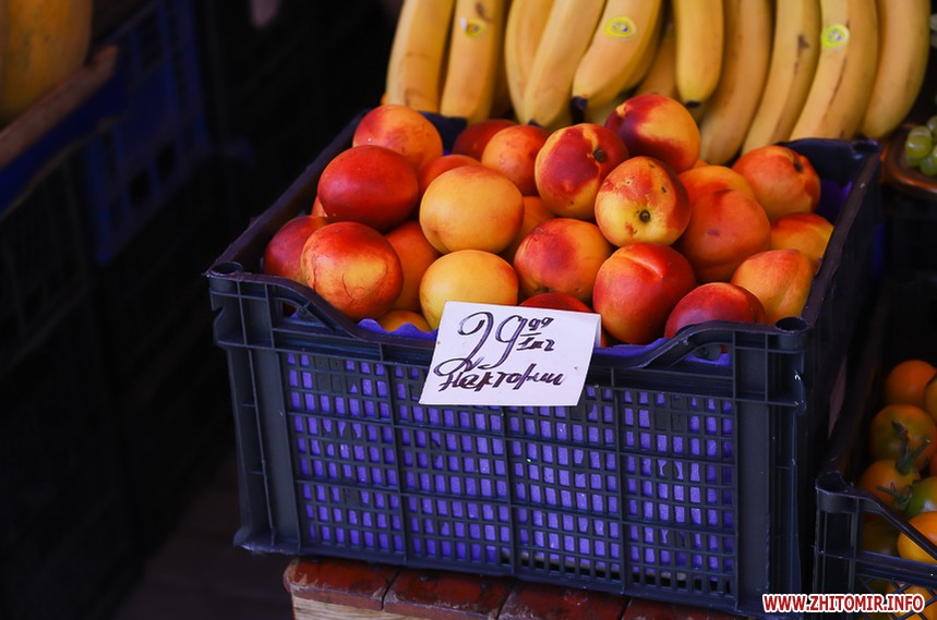 Сливи, персики, нектарин, банани, ківі, кавуни, дині, виноград різних сортів, а ще кизил, малина, ожина і навіть полуниця – від різноманіття асортименту фруктів-ягід на Житньому ринку в Житомирі розбігаються очі. Серпень-вересень – просто «райський» період для любителів соковитих, ароматних та апетитних плодів.