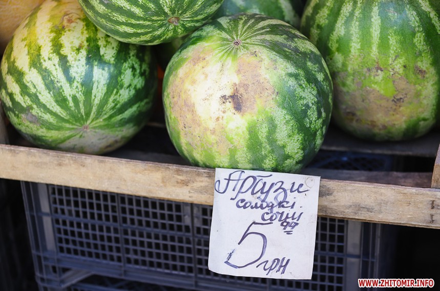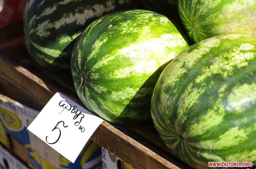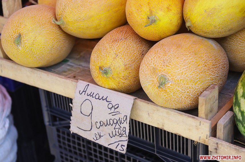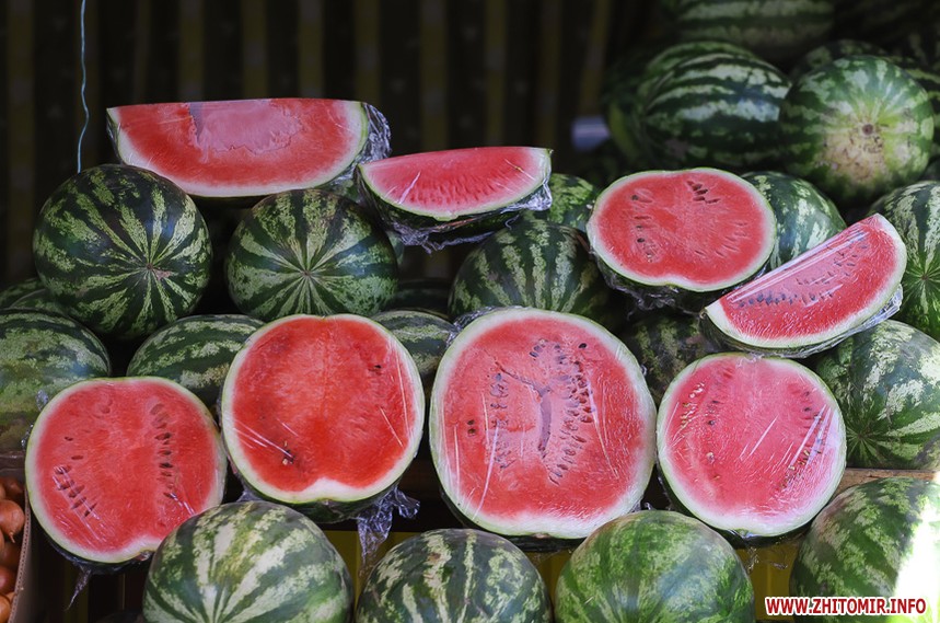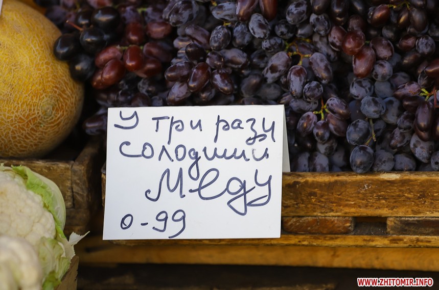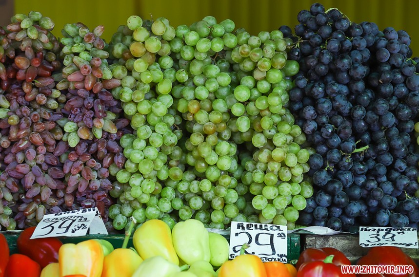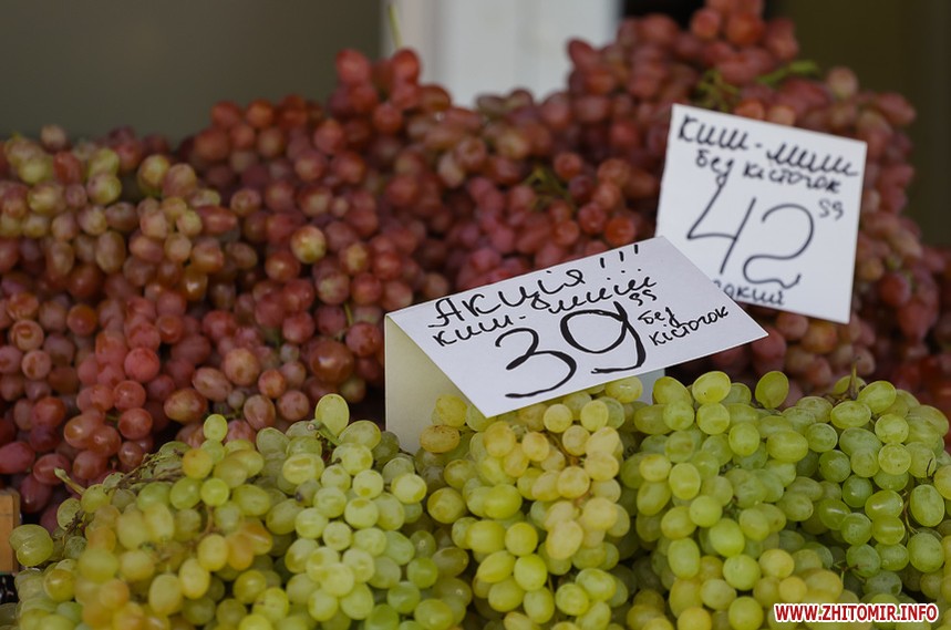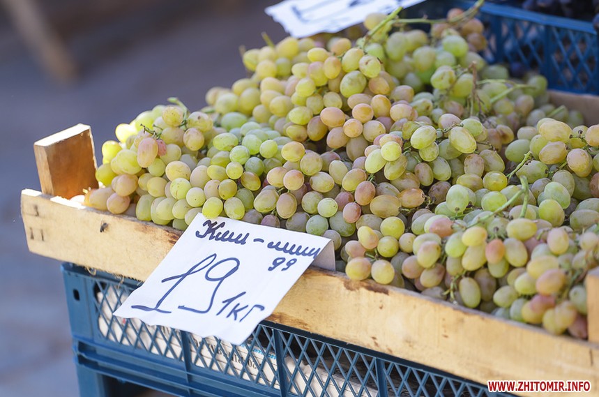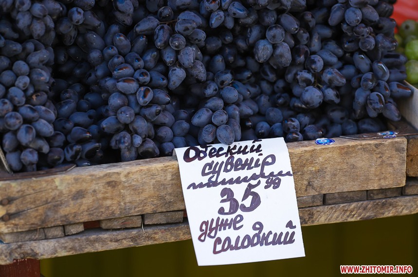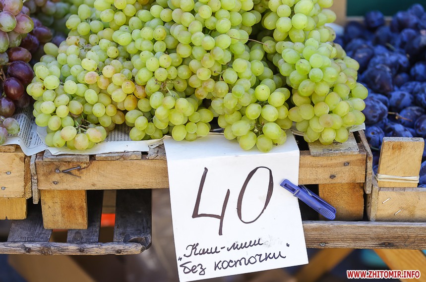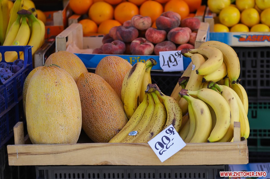 Сливи, персики, нектарин, банани, ківі, кавуни, дині, виноград різних сортів, а ще кизил, малина, ожина і навіть полуниця – від різноманіття асортименту фруктів-ягід на Житньому ринку в Житомирі розбігаються очі. Серпень-вересень – просто «райський» період для любителів соковитих, ароматних та апетитних плодів.