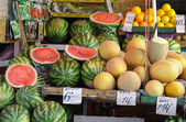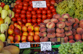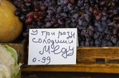 У розпалі сезону кавуни коштують 6 грн за кг, дині, «солодкі як мед», – по 10 грн, виноград – від 20 до 40 грн за кг, а за пластикову склянку вересневої полуниці правлять від 20 грн.