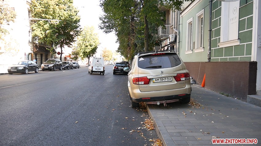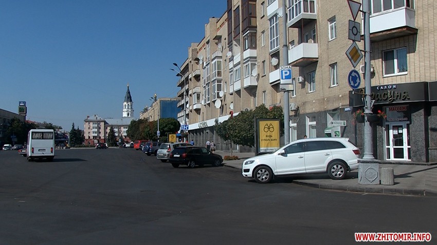 «Ми аналізували центральну частину міста і знайшли на прилеглих, центральних вулицях міста більше 1,5 тисячі паркомісць. Частина з них організовані, з розміткою, навігаційними знаками. Але всі вони принципово були організовані на нецентральних вулицях. На центральних, наприклад, Бердичівській та Київській, встановлені знаки, які забороняють паркуватися, тому що автомобіль, запаркований у крайній смузі, обмежує рух для іншого транспорту», – розповідає заступник Житомирського міського голови Дмитро Ткачук.
