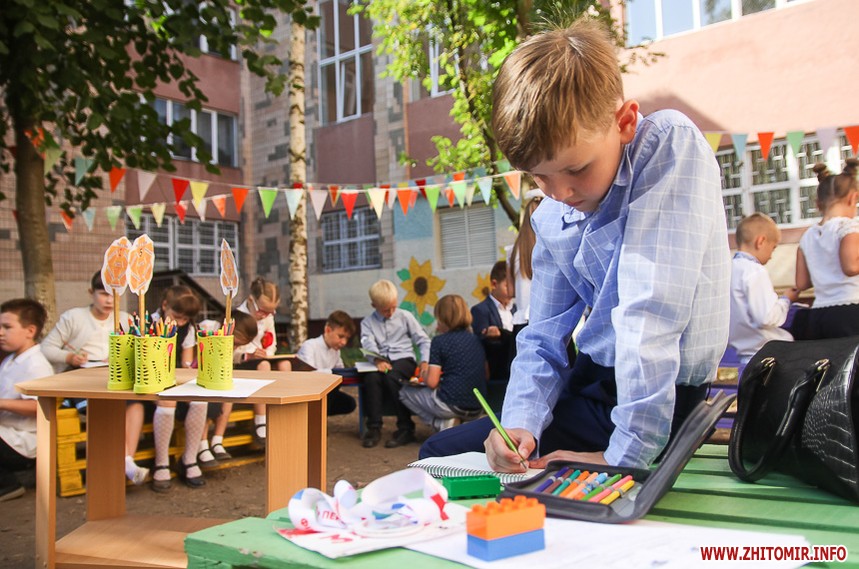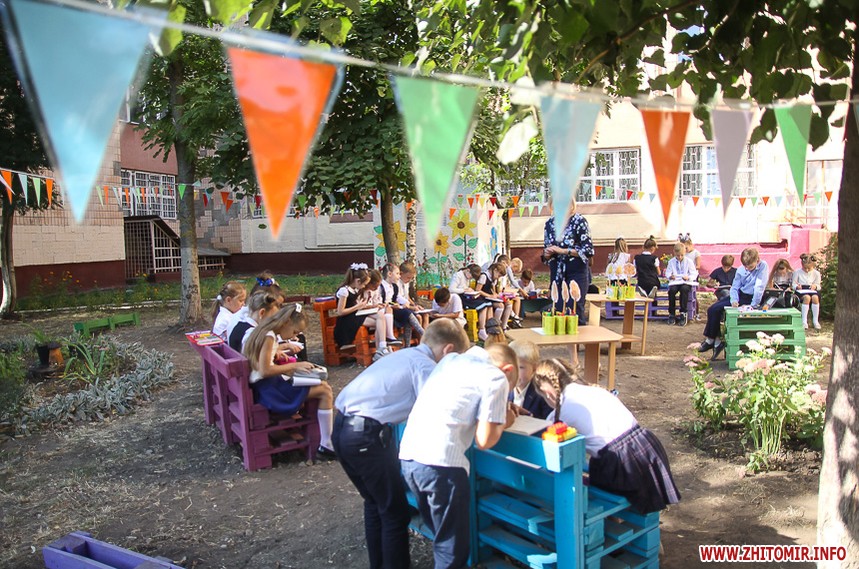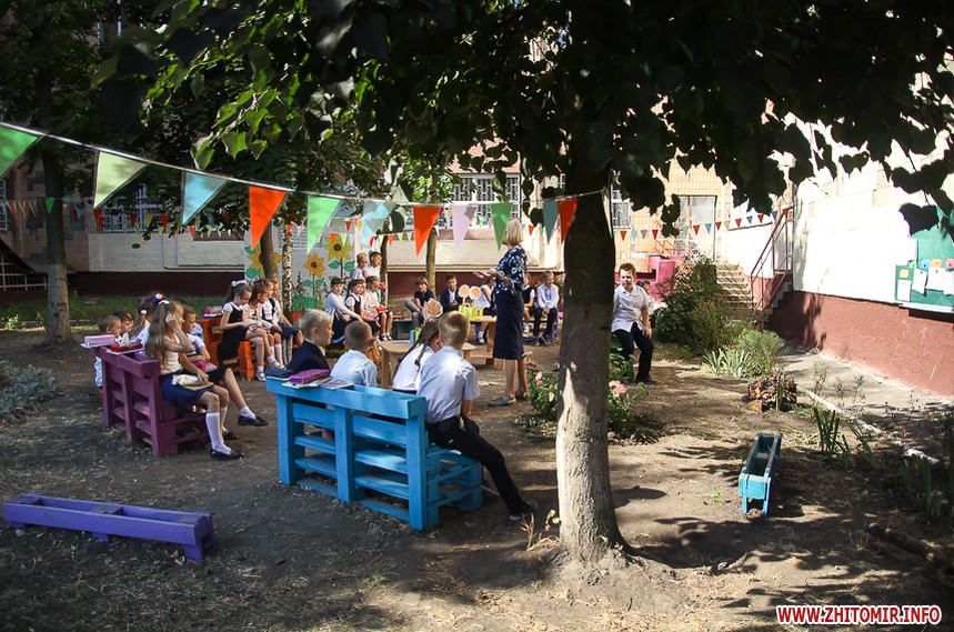 Цьогоріч у житомирській школі №28 діти отримали можливість проводити більше часу на свіжому повітрі, адже влітку тут облаштували три класи просто неба.