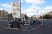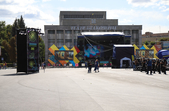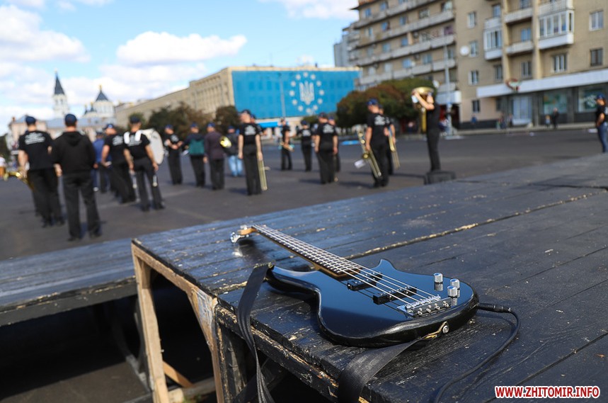 Соборний майдан поки напівпорожній, поки тут гучно грає музика і тривають репетиції військових оркестрів, яких має бути аж 16 з усієї України. О 15.30 вони ходою пройдуть від стадіону "Спартак Арена" до Соборного майдану, де о 16.00 розпочнеться фестиваль військових духових оркестрів "Ми єдині!".