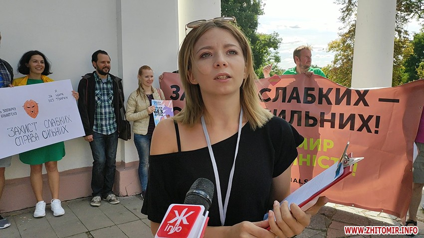 «Ми збираємося у містах України, аби заявити про права тварин. Просимо місто та владу підтримати нас та впровадити правила утримання тварин, впровадження зоополіції та чіткого визначення прав власності на тварину. Закликаємо бути відповідальними та стерилізувати питомців», - розповідає організаторка маршу в Житомирі, член ГО «Громадська міська організація захисту прав тварин» Вікторія Воронкова.