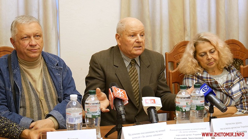 Одним із перших, хто поставив «За двома зайцями» у житомирському театрі, є режисер-постановник Григорій Артеменко. За його словами, вистава вирізняється влучним гумором, який базується на життєвих історіях, «тому що «Зайці» – це велика правда. Вона представлена як комедія, але це життєва ситуація. Написана розважливо, а діалоги які! Дивитися цю п'єсу – одна насолода», – говорить режисер-постановник музичної комедії «За двома зайцями» Григорій Артеменко.