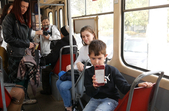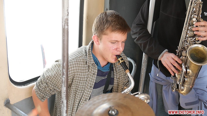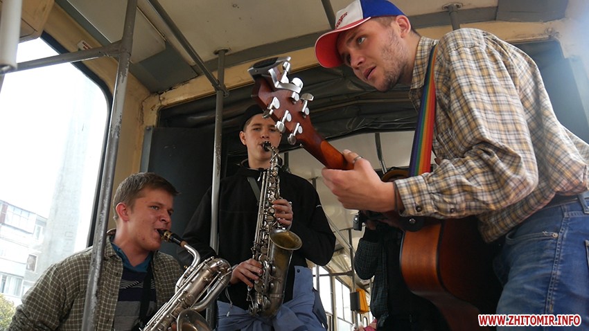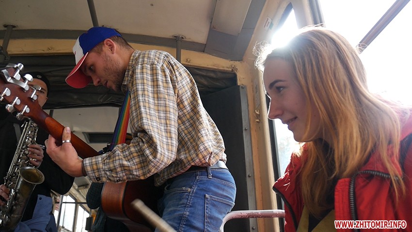 Юні музиканти проїхали маршрутом житомирського трамвая. Упродовж поїздки студенти демонстрували пасажирам свою майстерність гри на музичних інструментах.