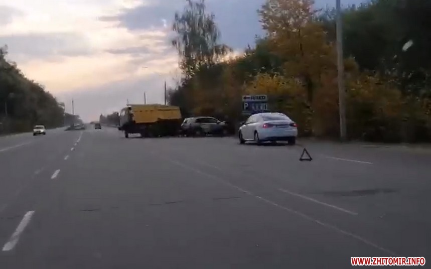 На виїзді з Житомира в сторону Києва трапились дві дорожньо-транспортні пригоди. Про це вранці 3 жовтня повідомив читач Микола, який проїздив повз місце ДТП.