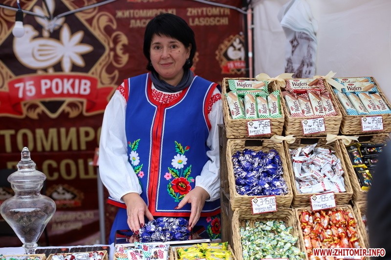 З притаманною українцям гостинністю зустрічали «Житомирські ласощі» відвідувачів виставки-продажу. Зокрема, серед широкого асортименту вирізнялися цукерки в коробках з такими доброзичливими назвами, як «Вітання із Житомира» та «Бажаємо щастя», які вже стали своєрідною візитівкою поліського краю.